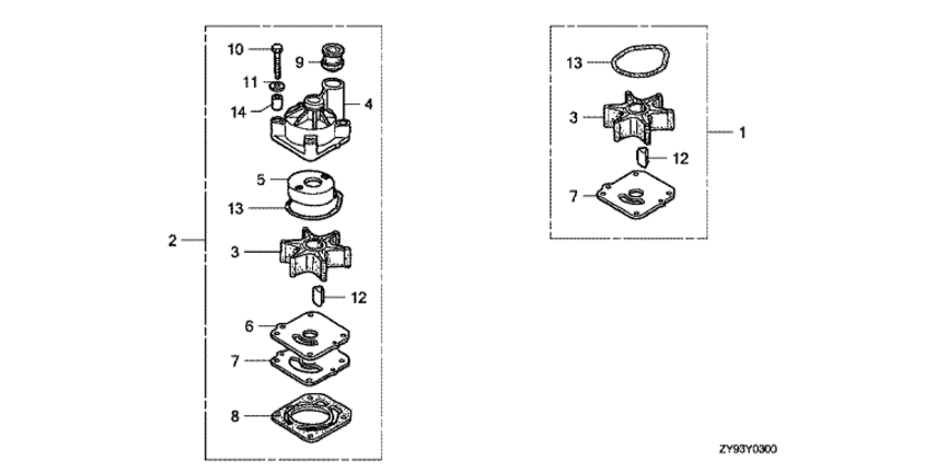| 2 | 06193-ZZ0-000 | Ремкомплект водяной помпы (Pump kit, impeller) | под заказ | 26600 руб. | |