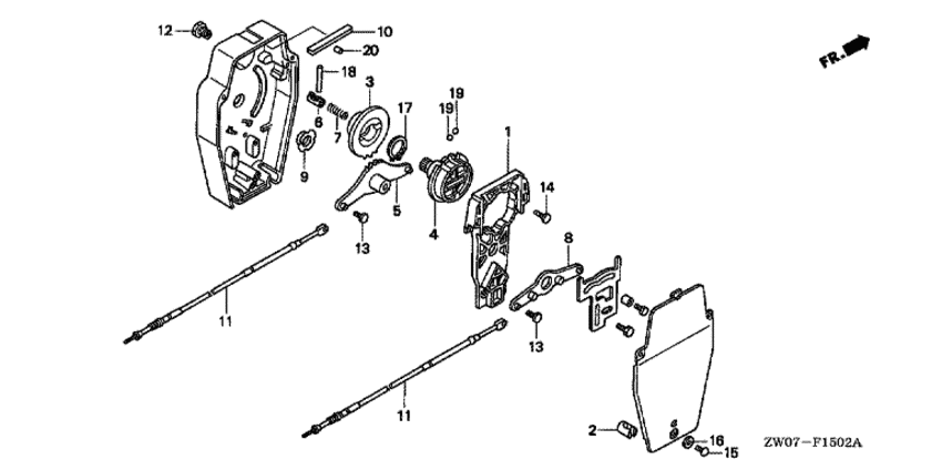 Модификация Вашего двигателя: Honda BF75A2 LHD Вернуться к выбору узлов мотора Внутренности машинки газ-реверс |