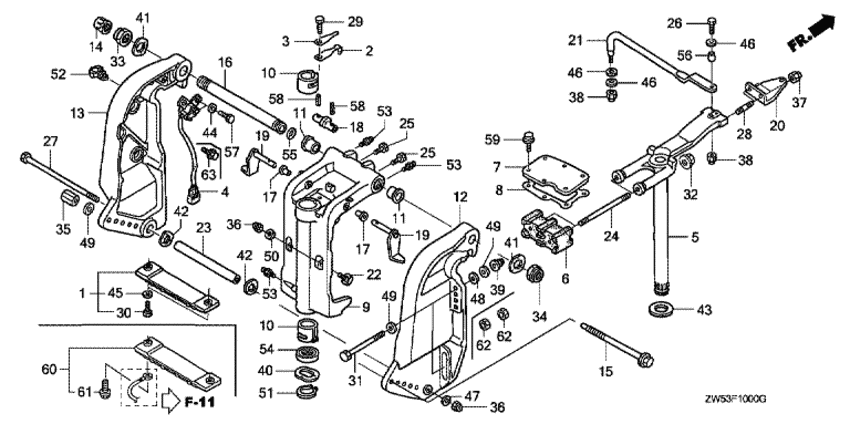 Модификация Вашего двигателя: Honda BF115A3 LC Вернуться к выбору узлов мотора Кронштейн транца / Поворотный корпус |