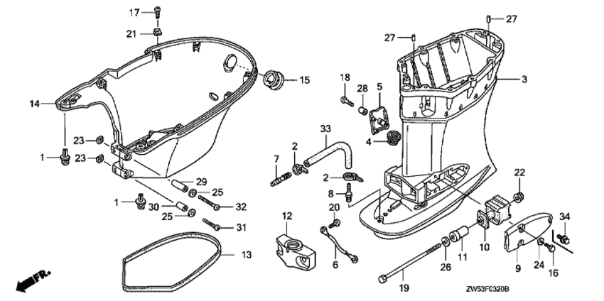 Модификация Вашего двигателя: Honda BF115A2 XCE Вернуться к выбору узлов мотора Удлинение корпуса |