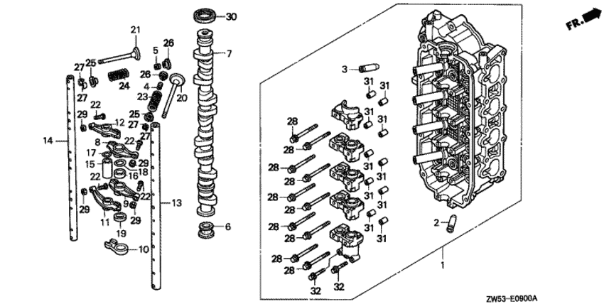 Модификация Вашего двигателя: Honda BF130A2 LD Вернуться к выбору узлов мотора Распределительный вал / Головка блока цилиндра |