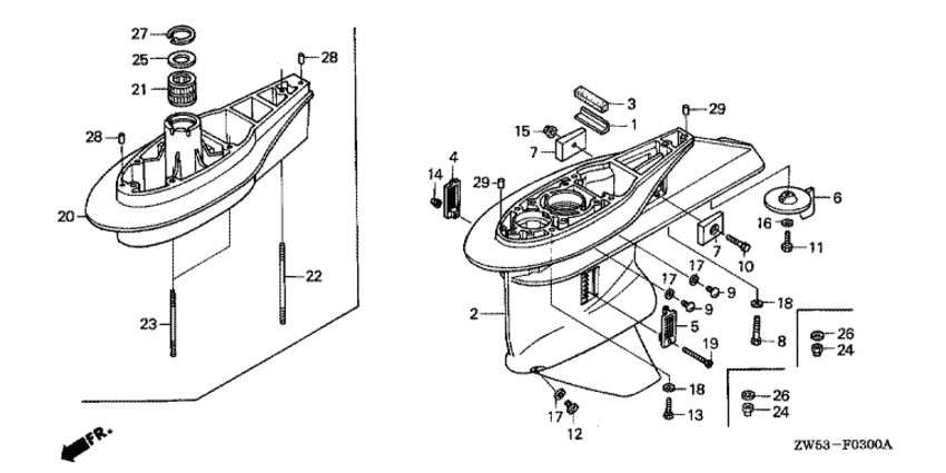 Модификация Вашего двигателя: Honda BF130A2 LCE Вернуться к выбору узлов мотора Картер коробки передач |