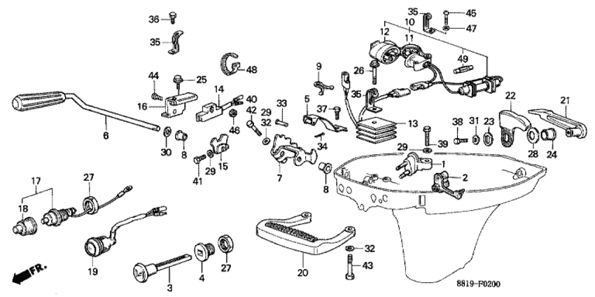 Модификация Вашего двигателя: Honda BF75D LD Вернуться к выбору узлов мотора Переключающий вал / Ручка для переноски / Крышка рычага блокировки |