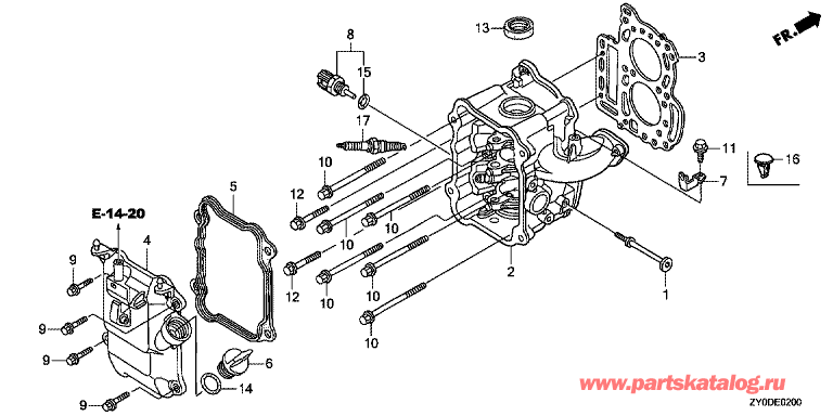 Модификация Вашего двигателя: Honda BF15DK2 SHU Вернуться к выбору узлов мотора E-02 Головка Цилиндра |