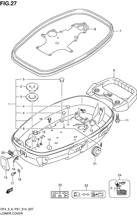 Купить комплектующие на подвесной двигатель Suzuki DF4S/L - Нижняя часть корпуса
