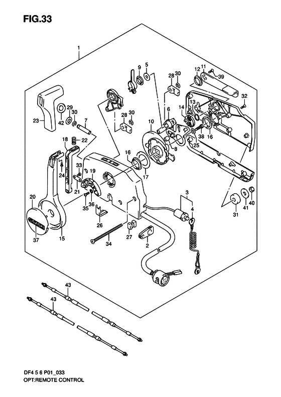 Комплектующие на подвесной лодочный двигатель Suzuki DF4S/L модель 2005 года - Опции: дистанционное управление