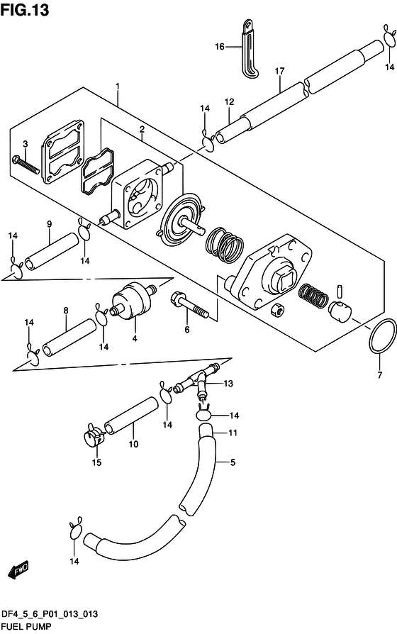 Подобрать запчасти на лодочный мотор Suzuki DF6S/L модель 2013 года - Fuel pump