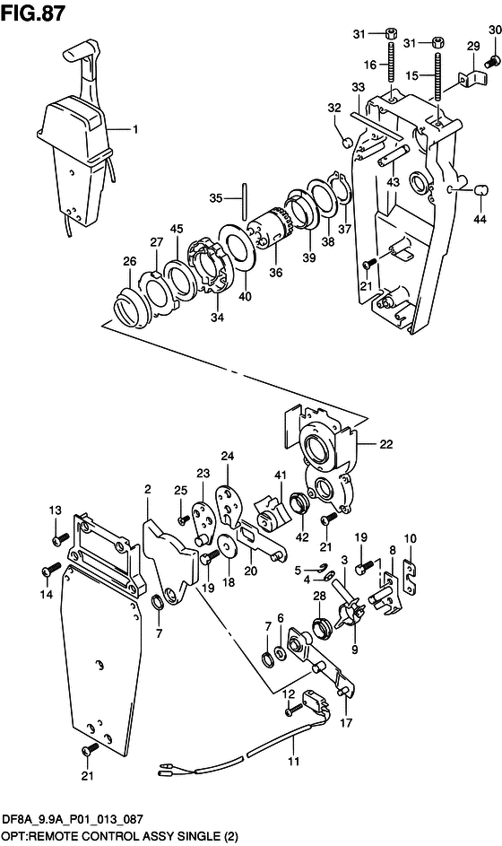 Запчасти Сузуки DF8AS/L; DF8ARS/L - Дистанционное управление в сборе, одинарное