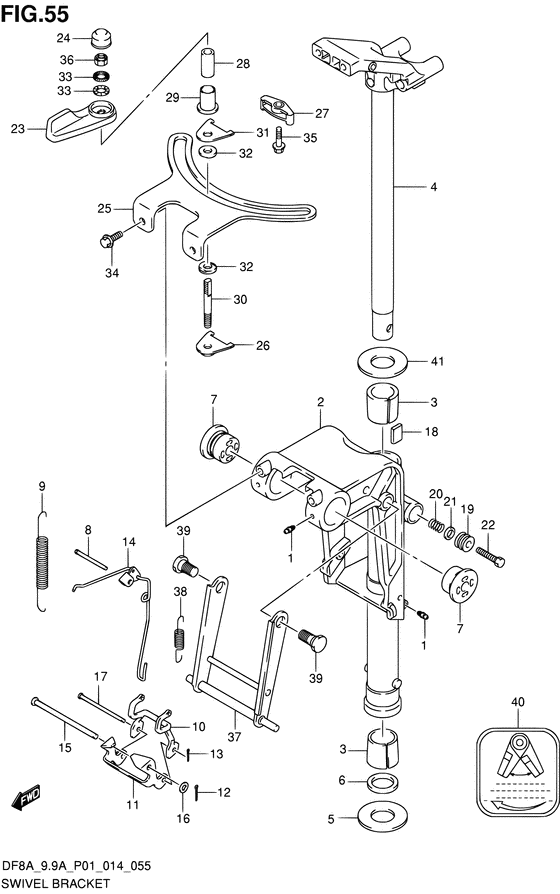 Запчасти на подвесной двигатель Suzuki DF8AS/L; DF8ARS/L - Поворотный кронштейн / Swivel bracket