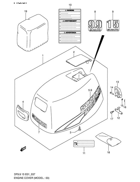 Подобрать запчасти на лодочный мотор Suzuki DF9.9S/L; DF9.9RS/L модель 2001 года - Engine cover