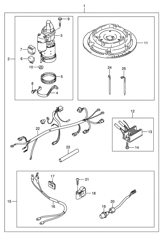 Подобрать оригинальные запчасти на подвесной лодочный мотор Suzuki DF9.9S/L; DF9.9RS/L - Starting motor