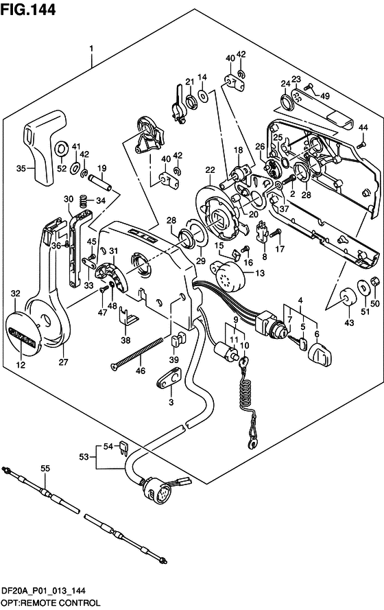 Подобрать оригинальные запчасти на подвесной лодочный мотор Suzuki DF15AS/L; DF15ARS/L - Opt:remote control