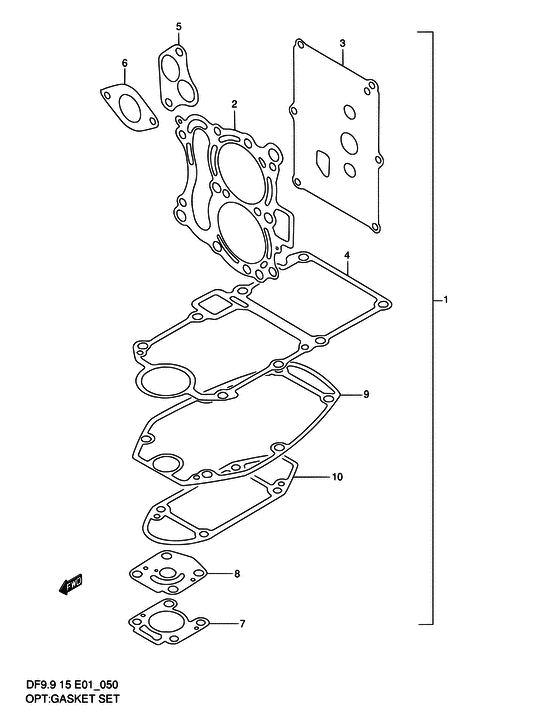 Оригинальные запчасти на лодочный мотор Suzuki DF15S/L; DF15RS/L модель 1997 года - Опции: комплект прокладок
