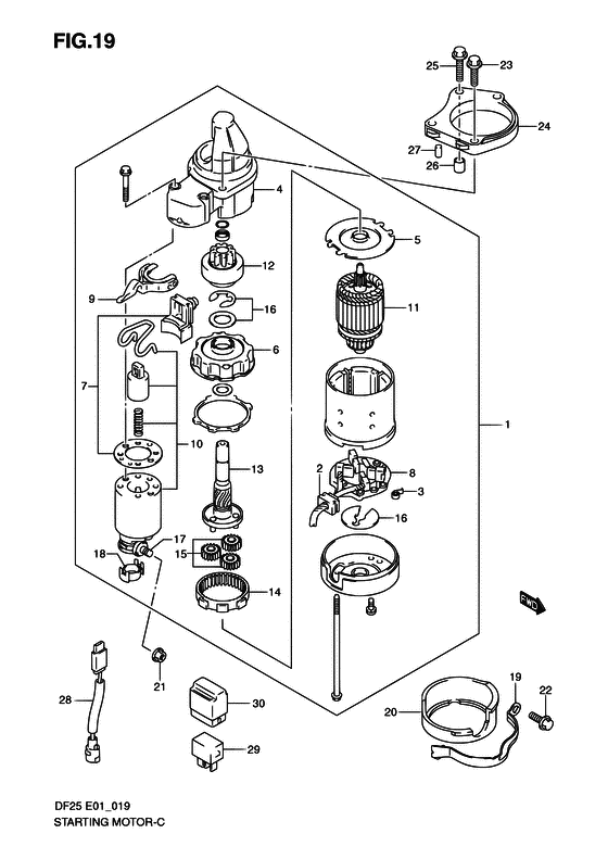 | 19 | 31912-95J00-000 | Крепежная скоба двигателя электростартера - Band, Starter Motor (Лента стартера мотора) | | под заказ | 760 руб. |