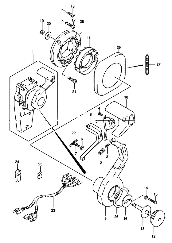 | 23 | 36890-92E00-000 | Жгут проводов нейтрали и переключателя гидроподъема - Wire, Neutral & Ptt Sw (Wire harness # ) (Проводка) | | под заказ | 4540 руб. |