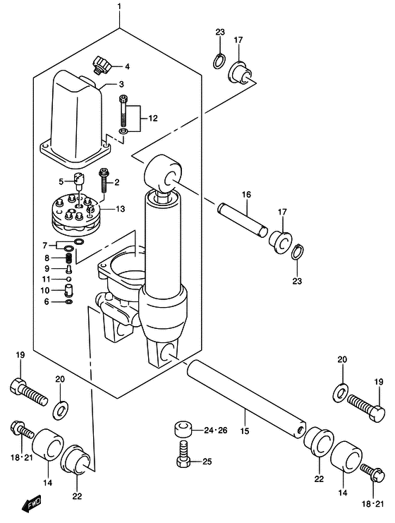 Купить запчасти на подвесной двигатель SUZUKI DF25S/L; DF25RS/L; DF25QS/L; DF25TS/L - Power trim
