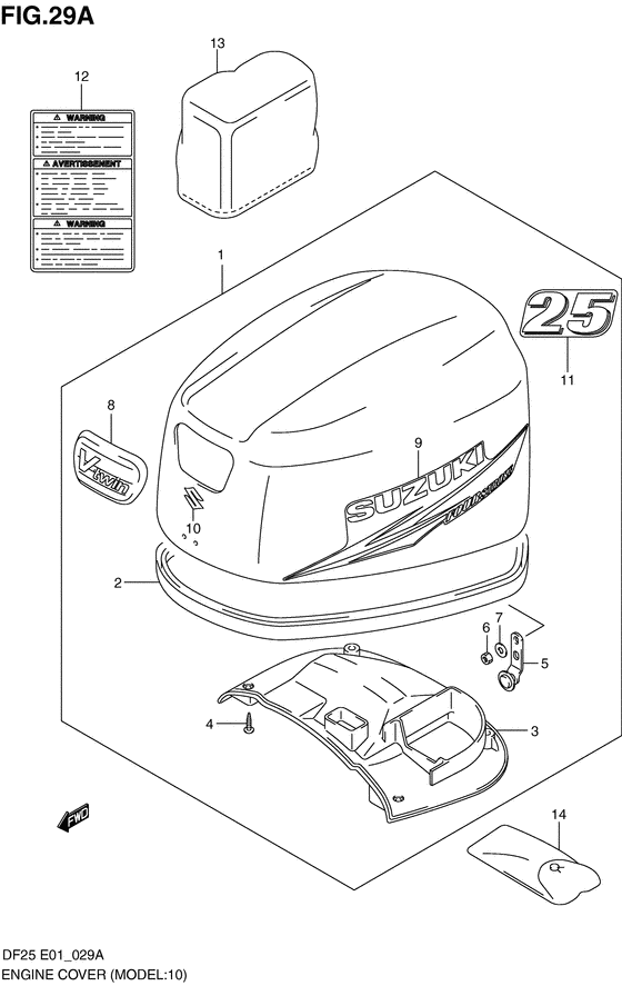 | 12 | 61458-99E40-000 | Наклейка капота двигателя - Label, Engine Cover (Df25:010624~ # ) (Label, engine cover) | | под заказ | 1090 руб. |