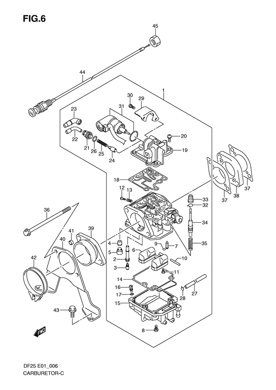 Купить оригинальные запчасти Suzuki DF25S/L; DF25RS/L; DF25QS/L; DF25TS/L - Carburetor
