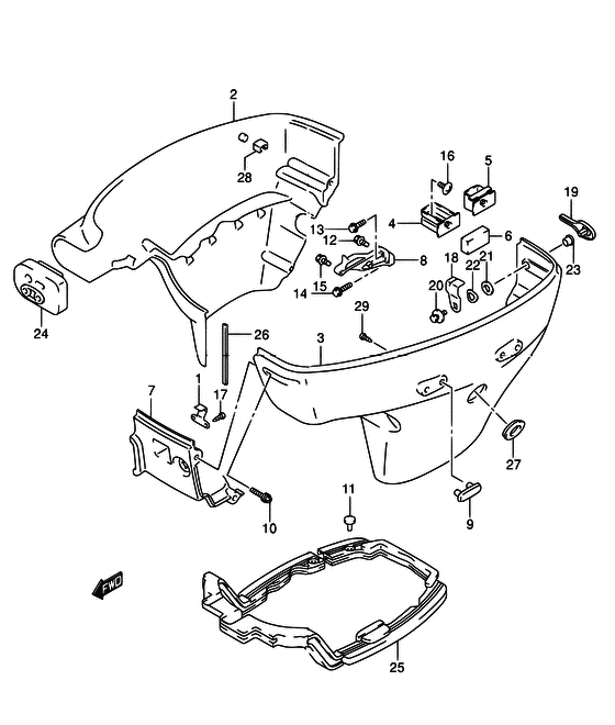 Оригинальные запчасти на мотор Suzuki DF30S/L; DF30RS/L; DF30QS/L; DF30TS/L модель 2004 года - Side cover