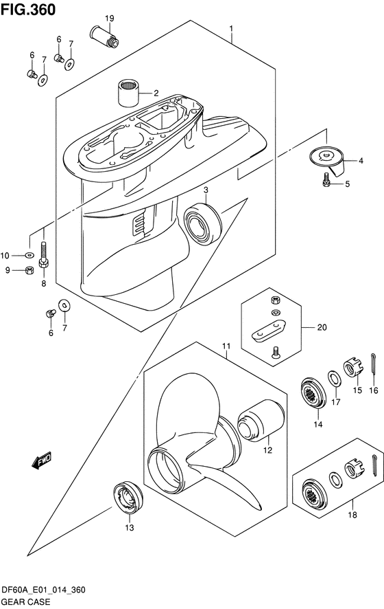 Оригинальные запчасти на лодочный мотор Suzuki DF40ASTS/L - Картер коробки передач