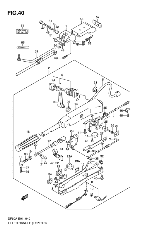 Купить оригинальные запчасти на подвесной лодочный двигатель Сузуки DF40AQHS/L; DF40ATS/L - Tiller handle