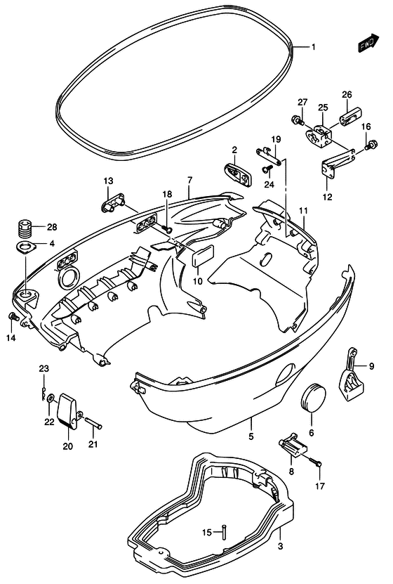 Подобрать оригинальные запчасти на подвесной двигатель Suzuki - Боковая крышка - Side cover