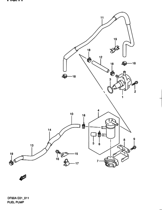 | 11 | 15192-88L11-000 | Топливный шланг (Фильтр To Помпа) - Hose, Fuel (filter To Pump) (DF60A:011616~ # ) (Hose, fuel (filter to pump)) | | под заказ | 6290 руб. |
