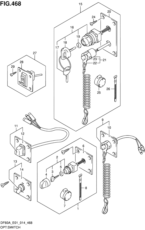 Найти запчасти на лодочный мотор Suzuki DF50AQHS/L; DF50AT(H)S/L - Опции: переключатели