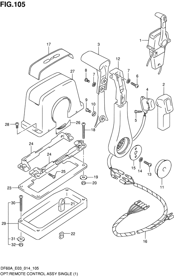 1 67200-88L01-000 (актуальный код замены) Одинарное дистанционное управление в сборе - Remote Control Assy, Single