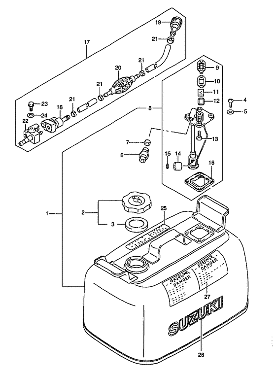 Купить запчасти на подвесной лодочный мотор Suzuki модель 2000 года - Топливный бак