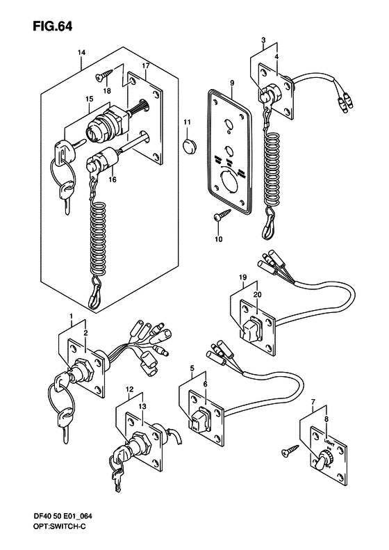 | 14 | 37100-99E20-000 | Панель выключателя зажигания, в сборе - Panel Assy, Engine Switch (MODEL:04 # ) | | под заказ | 16320 руб. |