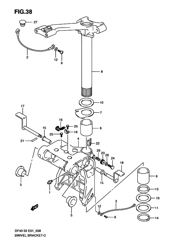 Комплектующие на лодочный мотор Suzuki модель 2001 года - Поворотный кронштейн / Swivel bracket