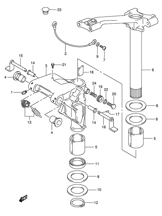 Купить оригинальные запчасти на лодочный мотор Сузуки - Поворотный кронштейн
