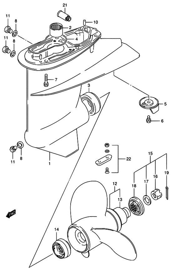 Найти запчасти на лодочный мотор Suzuki модель 2006 года - Картер коробки передач