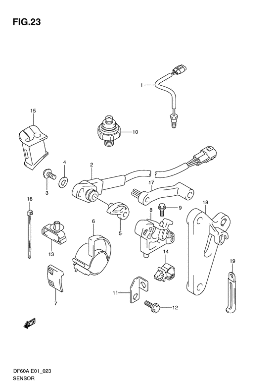 | 18 | 34845-88L00-000 | Кронштейн датчика трима - Bracket, Trim Sensor (Df40a/50a, except qh # ) | | под заказ | 1080 руб. |