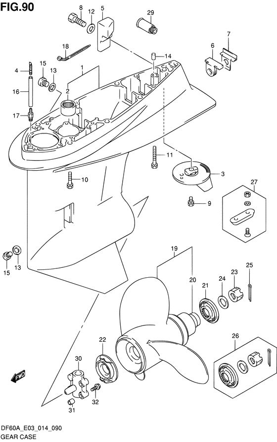 Комплектующие на лодочный мотор Suzuki DF60AVT(H)L/X - Картер коробки передач - Gear case