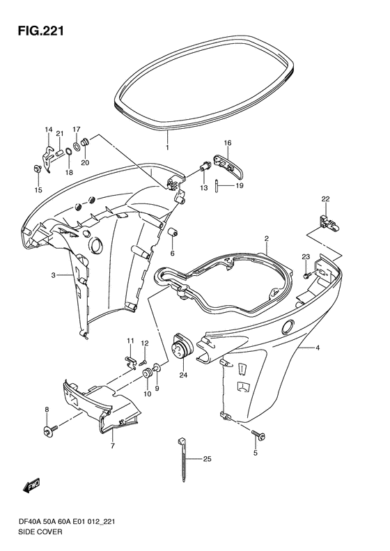| 4 | 61821-88L20-0EP | (актуальный код замены) Боковая крышка по левому борту (чёрный) - Cover, Side Port (black) | | под заказ | 60000 руб. |