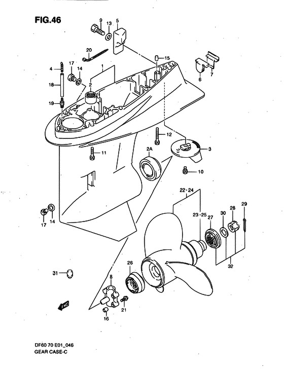 Купить комплектующие на подвесной двигатель Suzuki - Gear case / Картер коробки передач