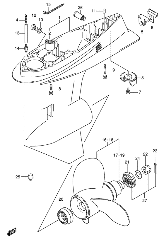 Купить запчасти на подвесной лодочный двигатель Suzuki - Картер коробки передач / Gear case