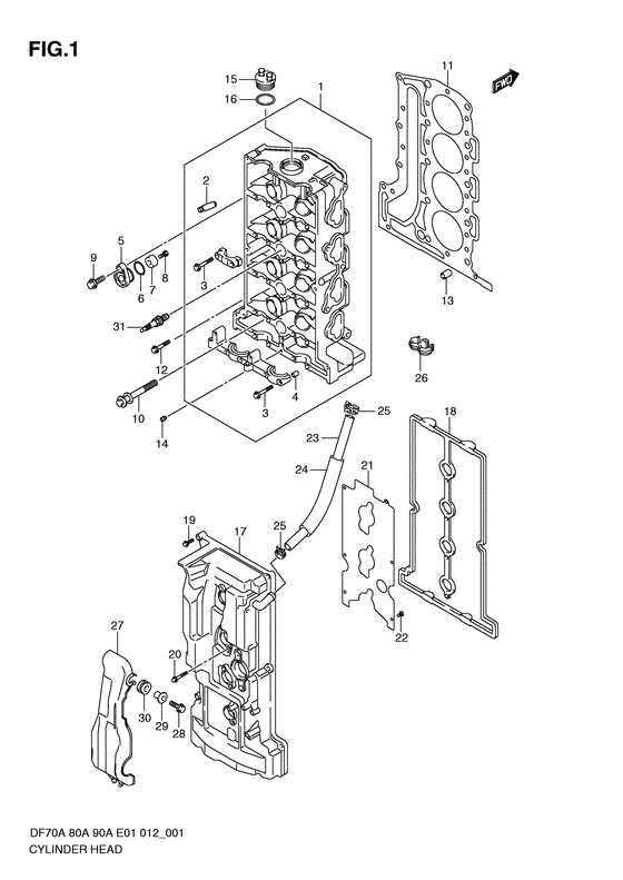 Оригинальные запчасти на лодочный подвесной мотор Suzuki - Головка блока цилиндра