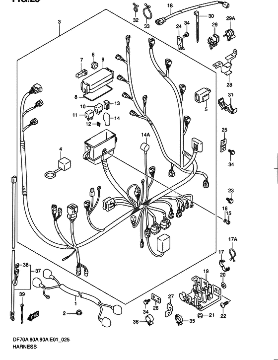 Комплектующие на подвесной двигатель Сузуки DF80AT(H)L/X; DF80AWT(H)L/X - Жгут проводов / Harness