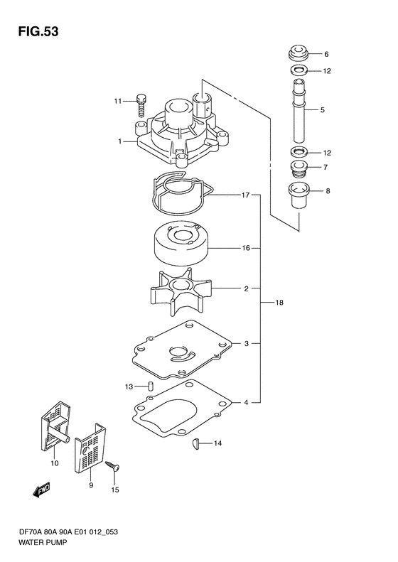 Комплектующие на мотор SUZUKI - Водяной насос / Water pump