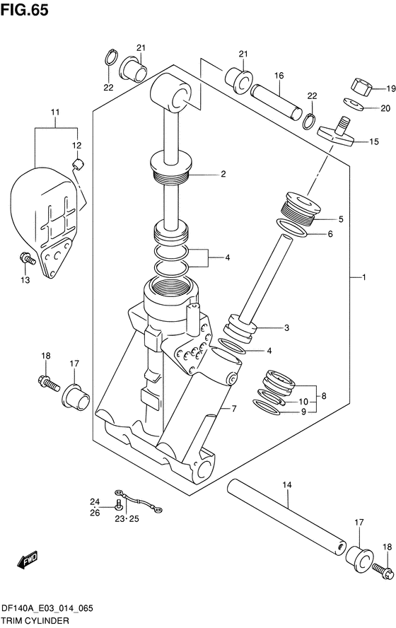 Подобрать оригинальные запчасти на подвесной лодочный двигатель Suzuki DF115A(Z)TL/X; - Цилиндр трима - Trim cylinder