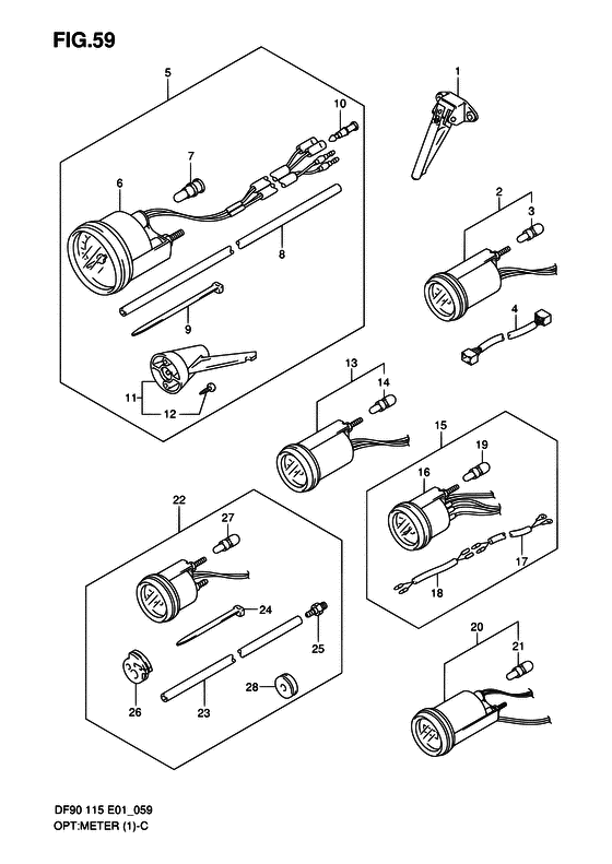 Подобрать оригинальные запчасти на мотор Suzuki DF115TL/X; DF115WTL/X модель 2006 года - Опции: приборы