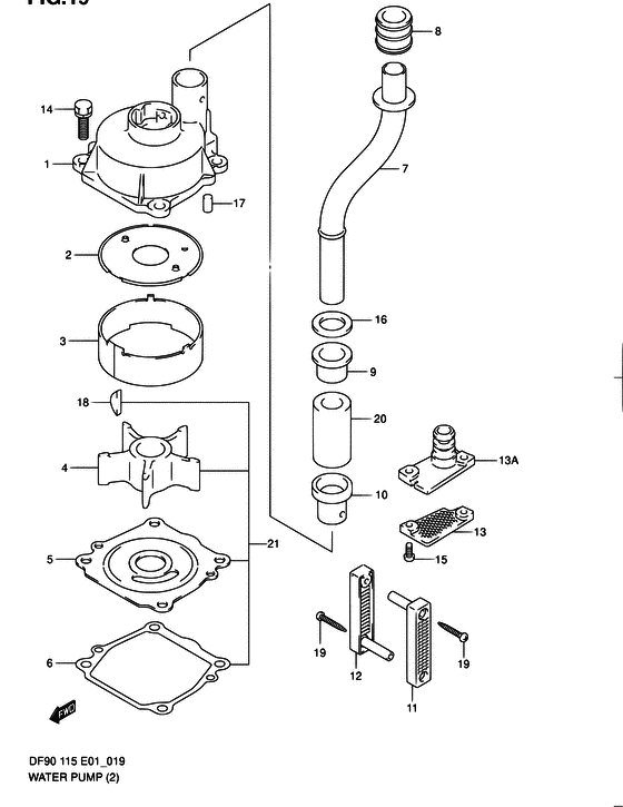 Запчасти на мотор Suzuki модель 2010 года - Водяной насос