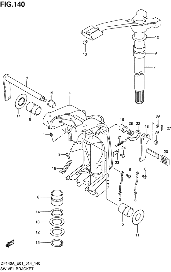 Подобрать запчасти на подвесной лодочный мотор Suzuki DF140A(Z)TL/X модель 2014 года - Swivel bracket