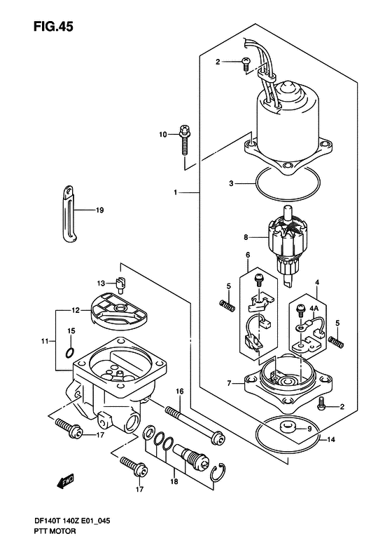 Подобрать запчасти на подвесной двигатель Suzuki - Двигатель гидроподъёма
