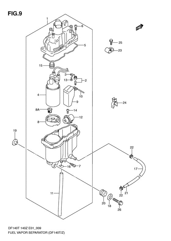 Подобрать оригинальные запчасти на лодочный подвесной мотор Suzuki модель 2010 года - Fuel vapor separator - Отделитель паров топлива