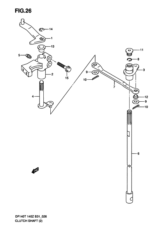 Комплектующие на подвесной двигатель Suzuki модель 2010 года - Сцепление Вал / Clutch shaft