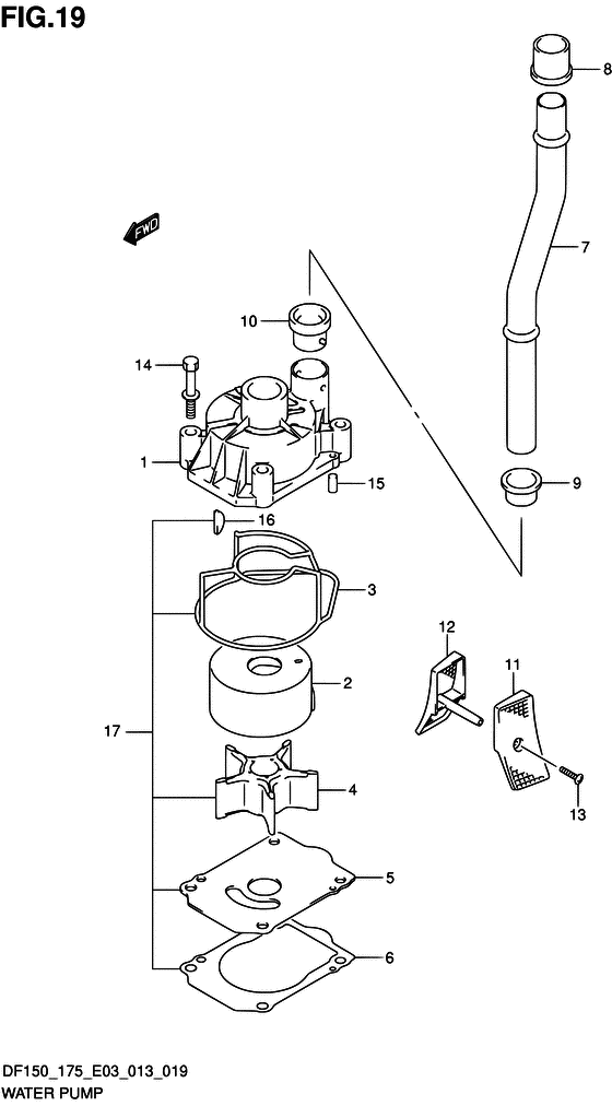 Запчасти на подвесной двигатель Сузуки модель 2013 года - Водяной насос